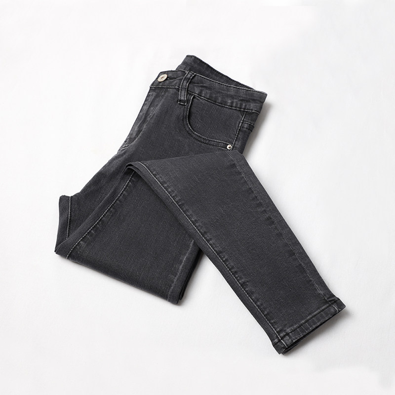 Smoke - gray jeans in 2022 new autumn and winter high waist and thin pencil nine points plus velvet pants