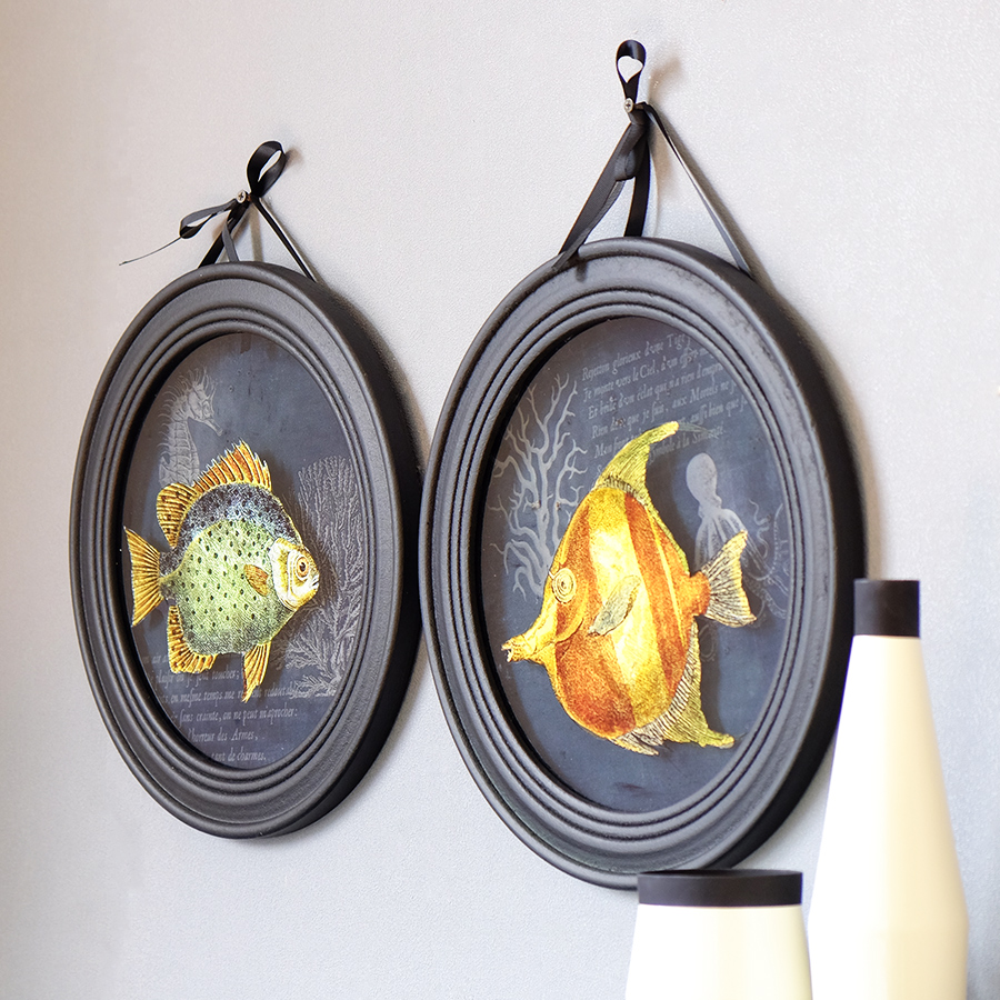 American country Mediterranean fish round painting tropical fish painting living room background wall dining room combination decorative painting