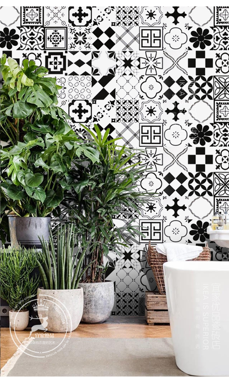 Nordic retro art tile 300 kitchen wall brick powder room balcony floor tile flower piece black and white four grid small flower brick