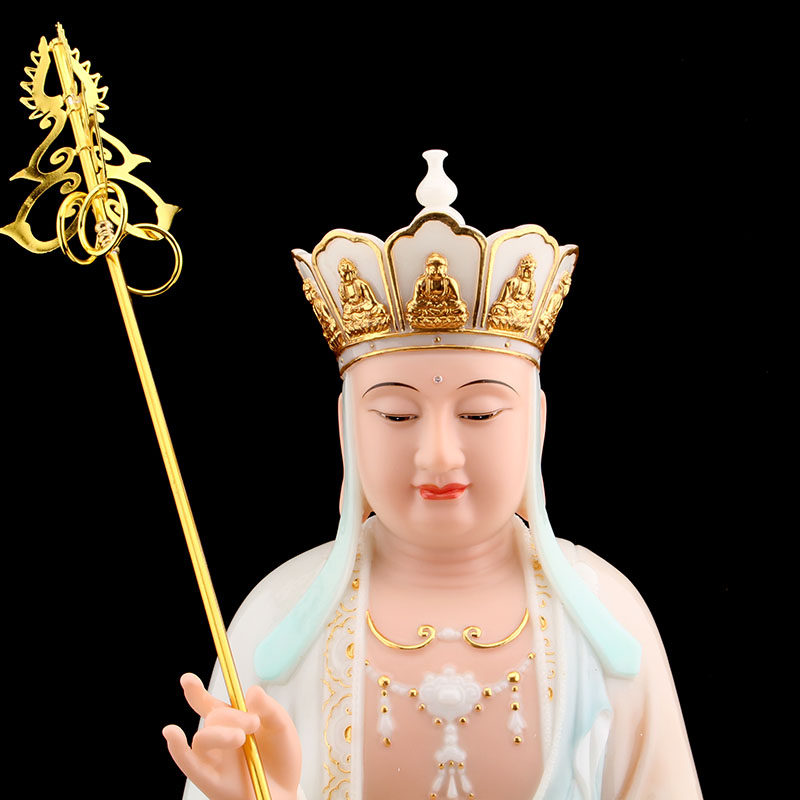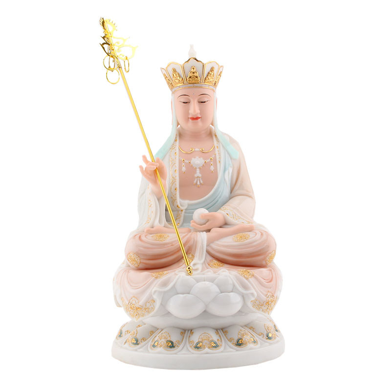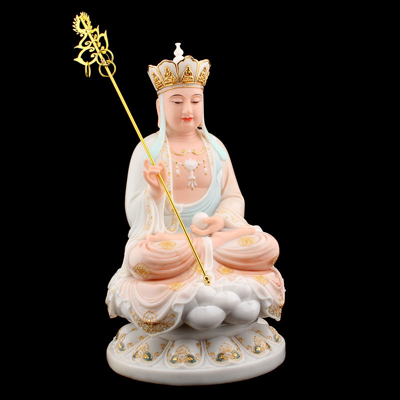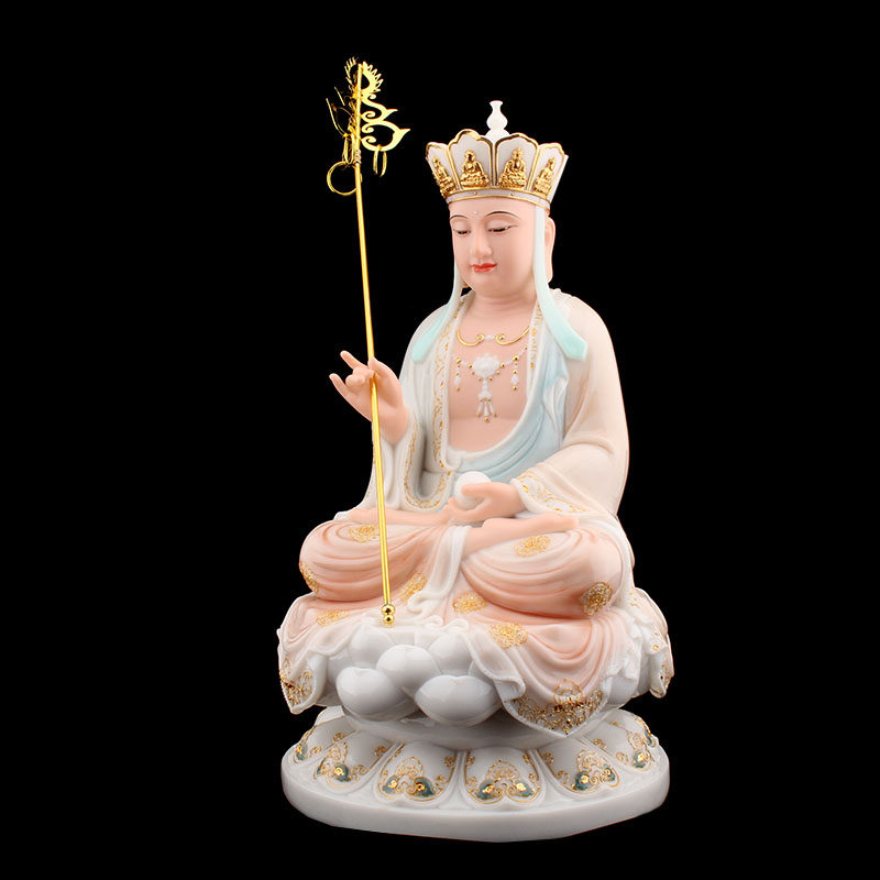 Stone sculptures Han Bai Yuji Tibetan King Buddha Colorful Glaze Tibetan Bodhisattva sitting in Lianbau Three Holy Gods Like a Home Figure Pendulum