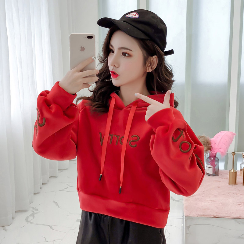 Short Tide Necropolis 2021 New Ladies Autumn Winter Loose Embroidered Gold Velvet Thickened and Hat Double-sided Suede Casual Blouse