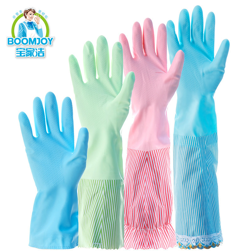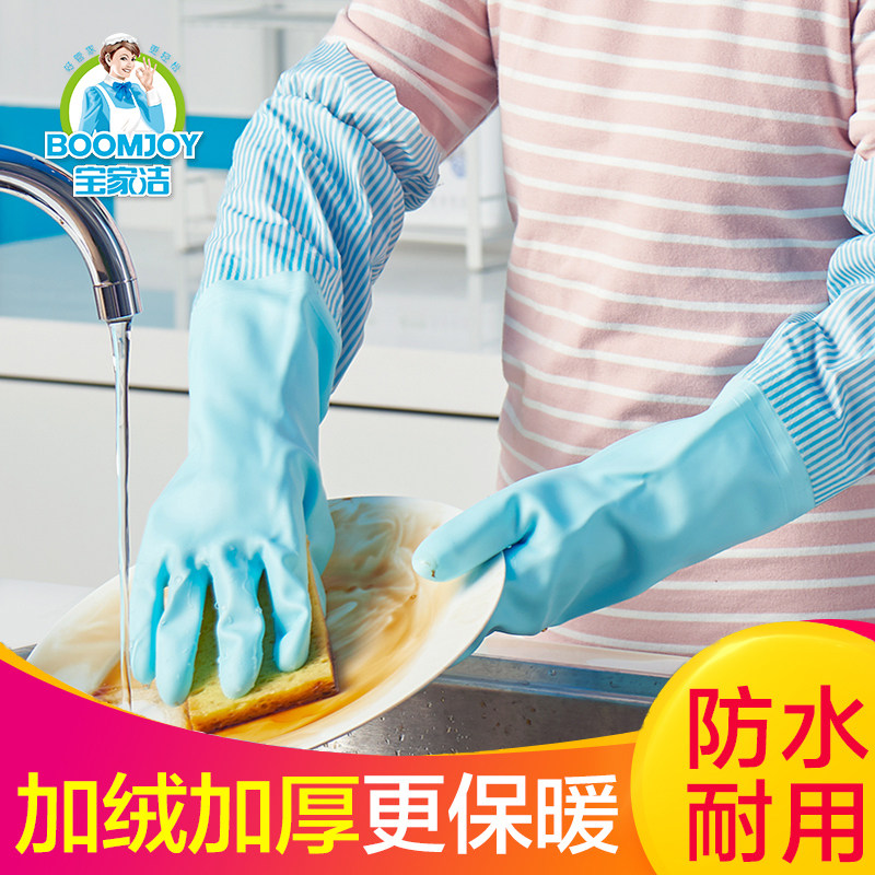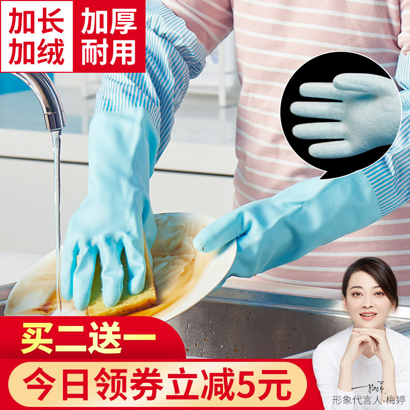 Washing dishes gloves female kitchen household latex rubber winter washing clothes plus velvet thickening warm waterproof and durable housework