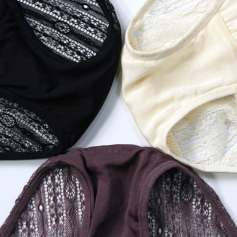 Chami silk panties female lace sexy hollow breathable 100 % sauna silk middle waist lady triangle underwear