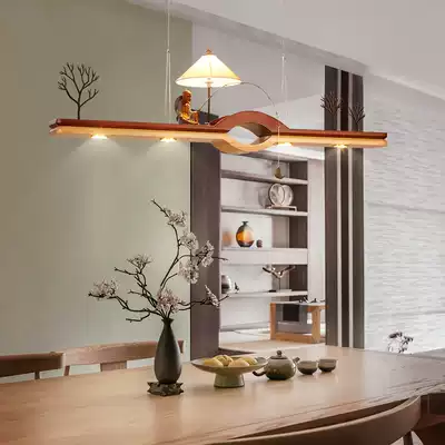 Zen retro art dining room new Chinese style 2019 chandelier tea room personality lamp rectangular Chandelier Creative solid wood