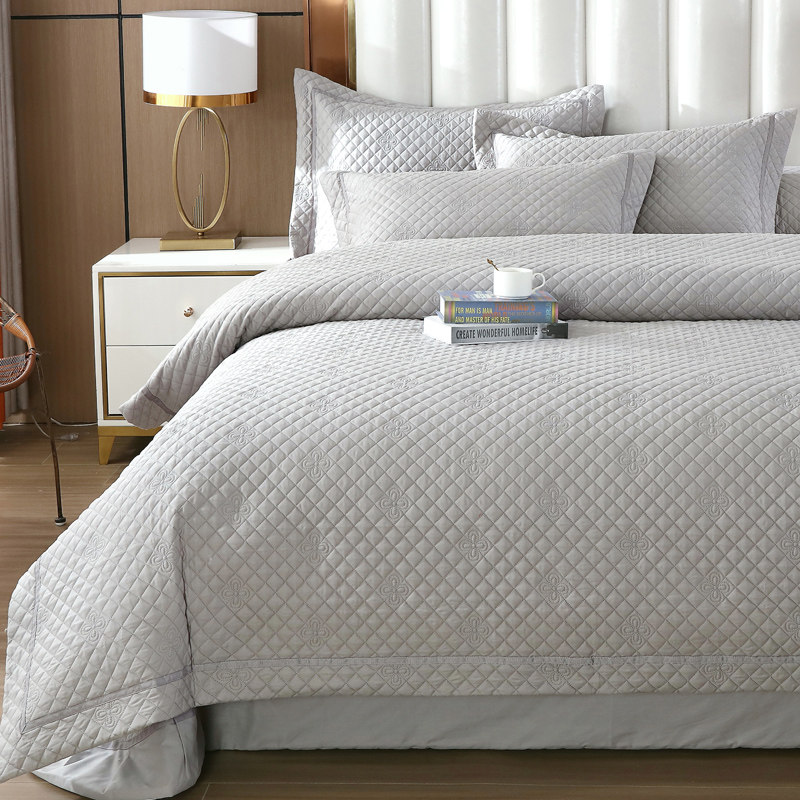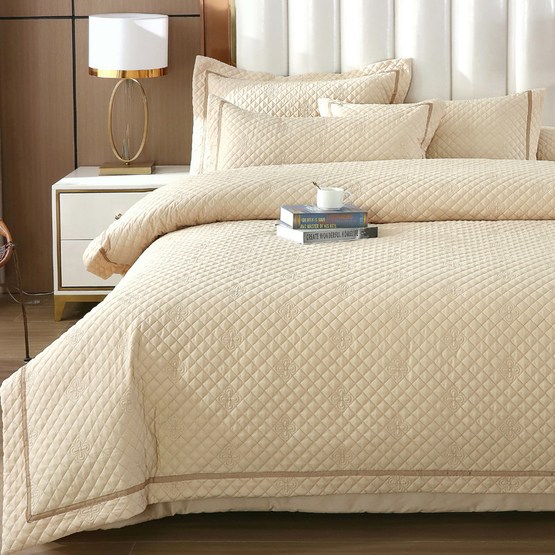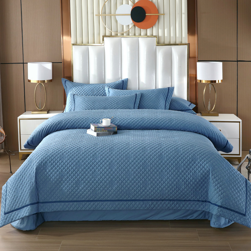 Home Clip Cotton Quilted Bed Cover Three Sets Pure Color Minimalist Thickening Clip Cotton Full Bed Linen Hotel Pure Cotton Four Pieces Type