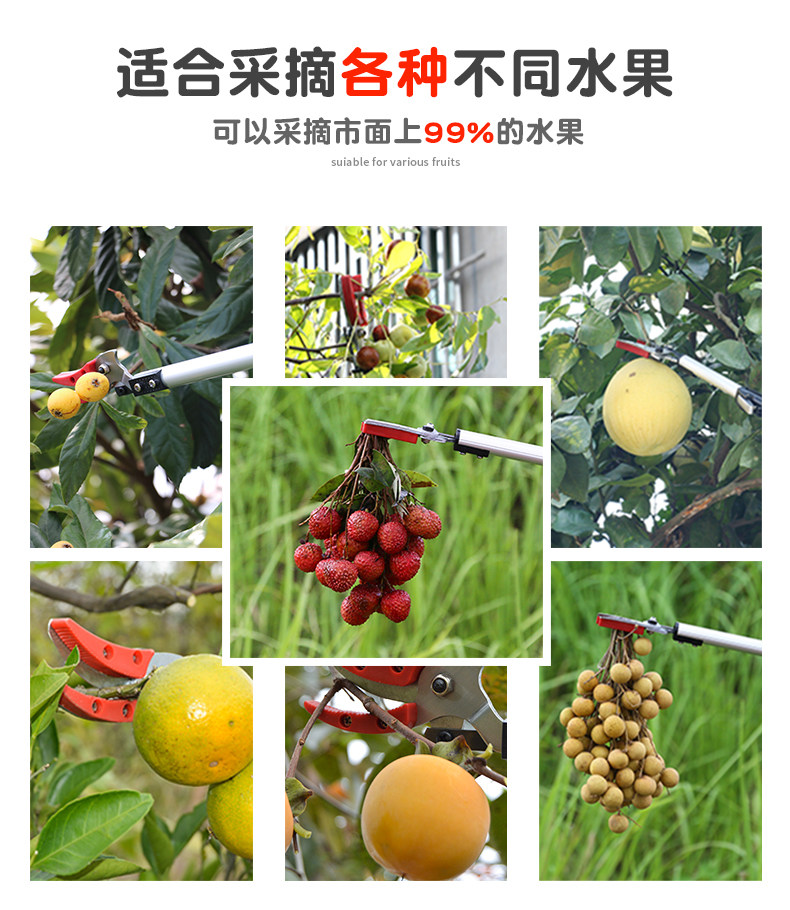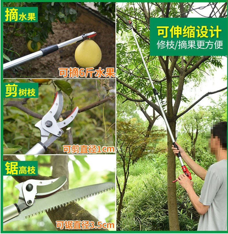 Fruit picking artifact: high-altitude fruit picking, pruning, fruit tree scissors, fruit cutting, high branch sawing, longan cutting, telescopic laurel round lychee