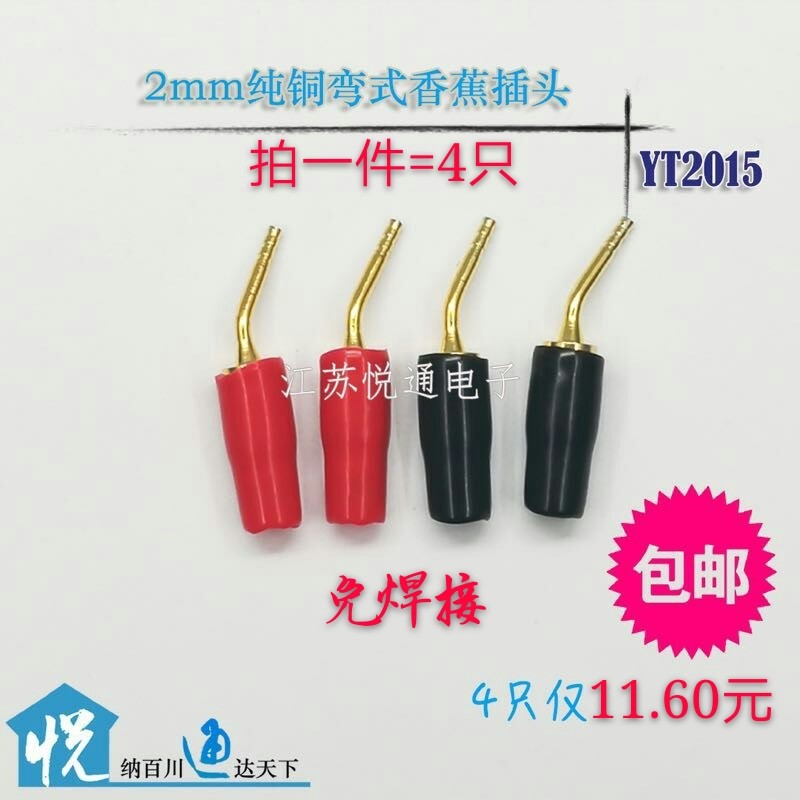 Gold Plated Bend 2mm Banana Plug Small Black Clip Active Sound Box Horn Audio Line Signal Connection Plug