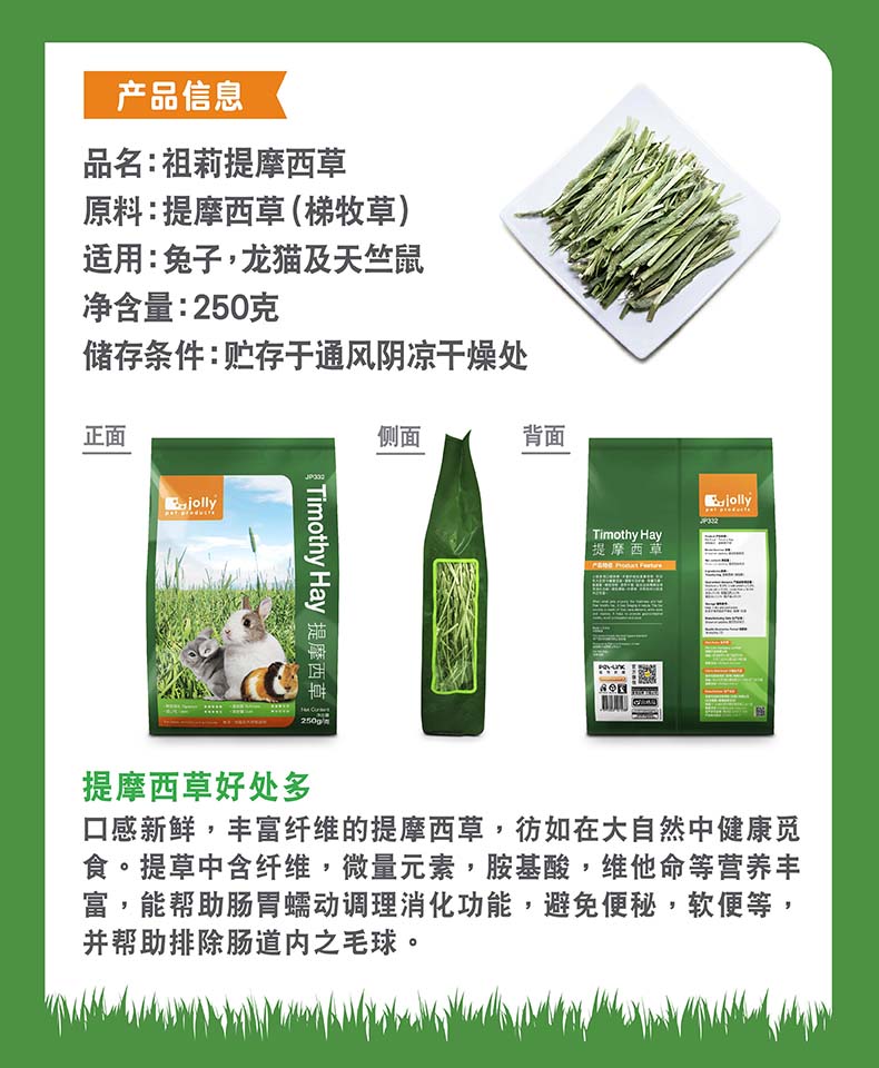 Jolly Zuli Timothy Grass Rabbit Chinchia Pig Feed Guinea Pig Hay Pastures 250g