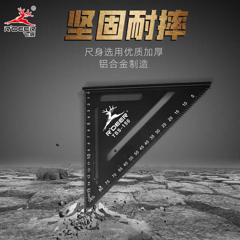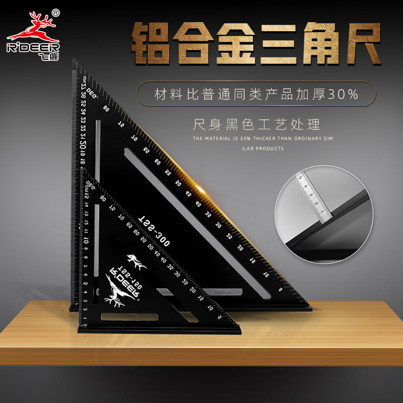 Flying deer tool wide bottom thickened triangular ruler wood angle ruler aluminium alloy ruler stainless steel angle ruler angle ruler angle ruler