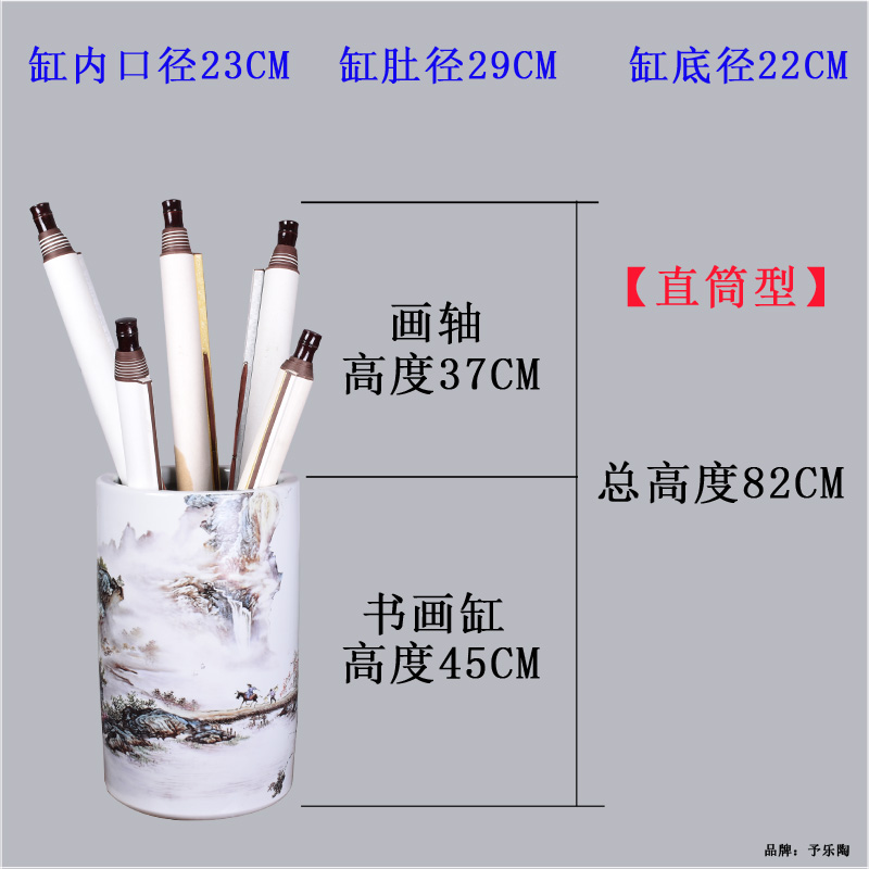 Jingdezhen Ceramic calligraphy and painting cylinder scroll cylinder character painting containing cylinder floor book room vase living room decoration swinging piece