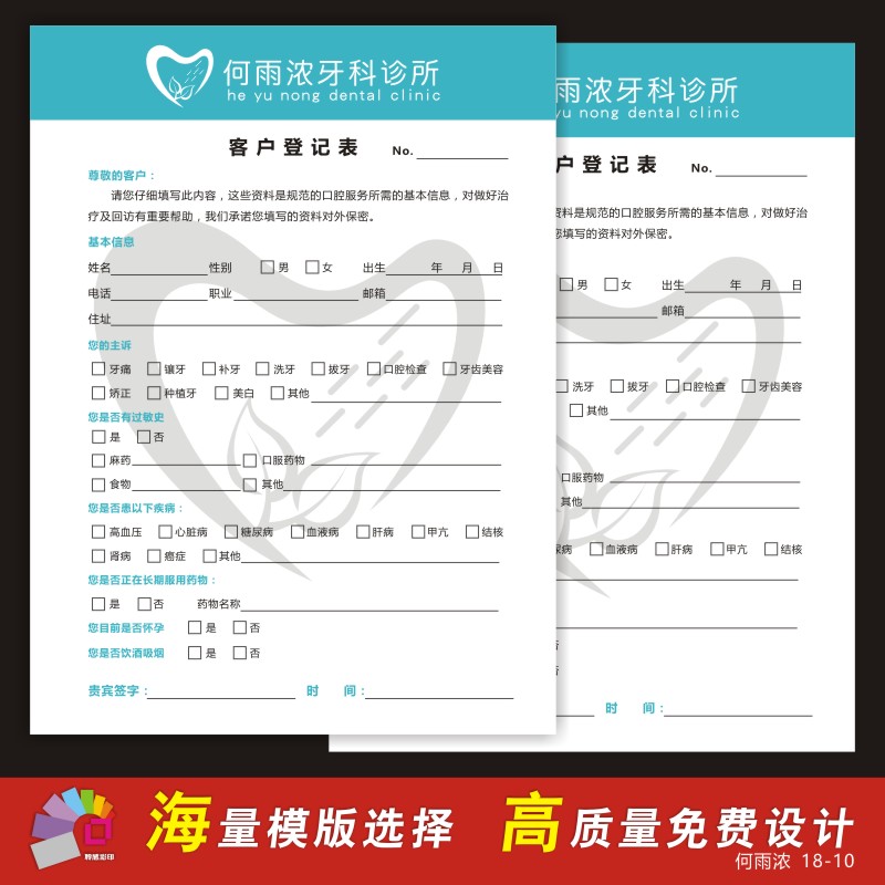Oral Dental Health Status Customer Registration Advisory Form Custom Market Survey Members Record Information Form Print