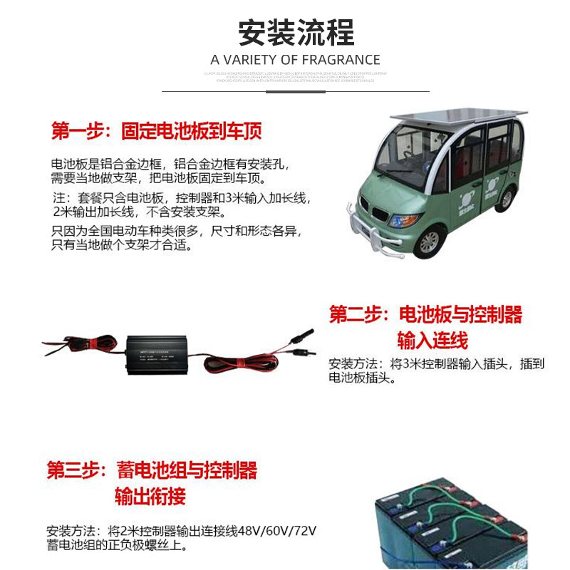 48V60V72V Electric Vehicle Three Wheel Four Wheel Roof Solar Panel Charging Boost Power Generation System 380W