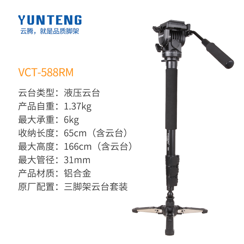 Cloud Teng 588 Single Eye Camera Solo Tripod Hydraulic Damping Tripod Head Wedding support Single foot stand Alone Corner Bracket with independent support