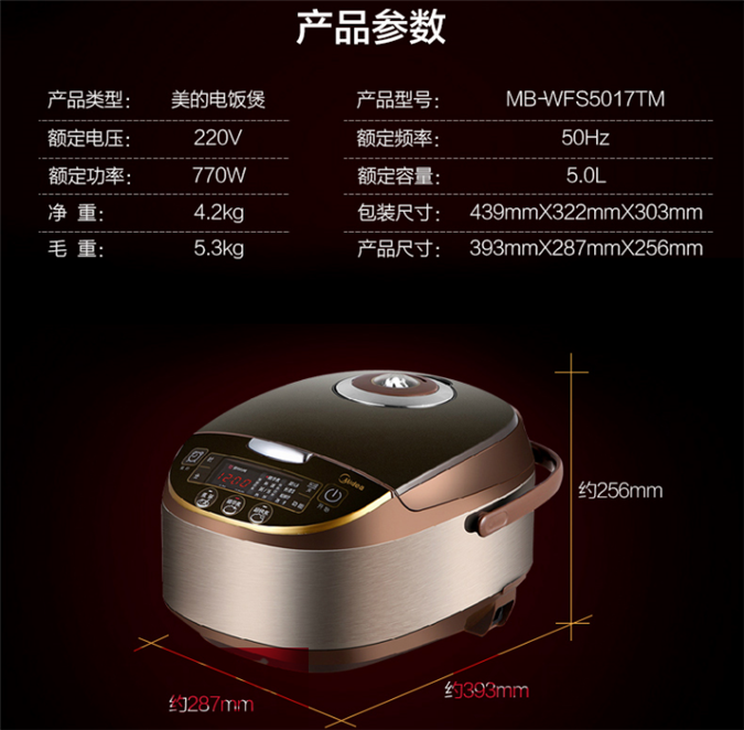 Midea MB-WFS5017TM Rice Cooker 5L Intelligent Large Capacity Household Electric Pot Special Offer