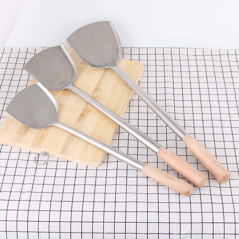 Stainless steel frying spoon Household spatula spatula frying spoon Chef thickened long handle soup spoon Large shovel vegetable spoon
