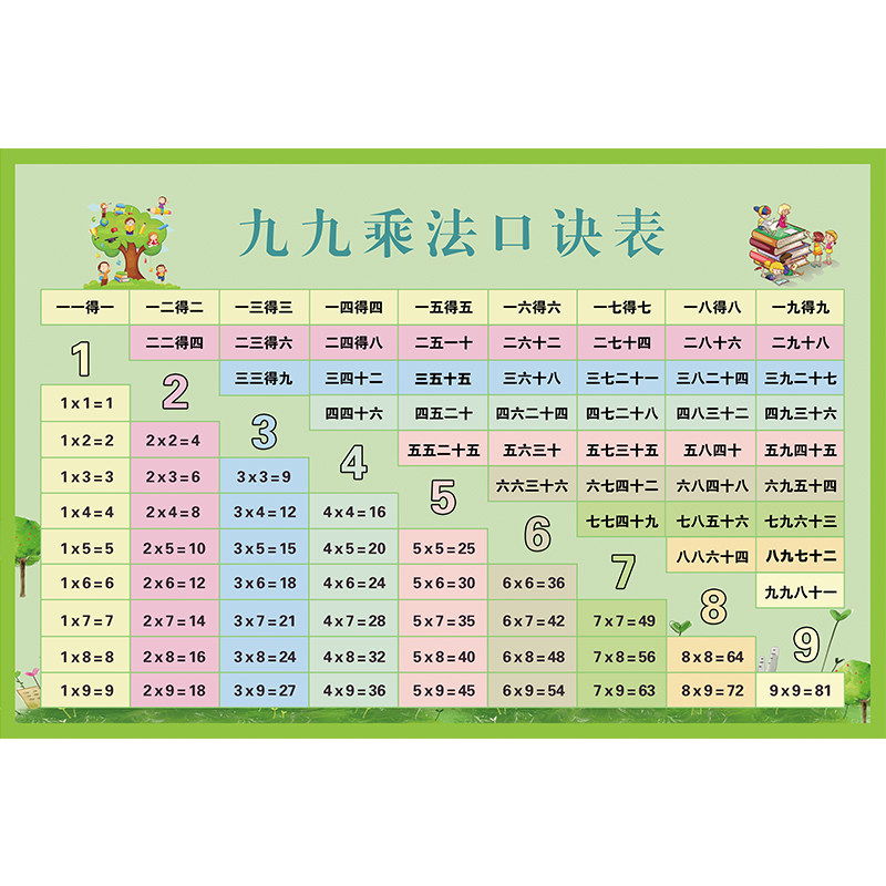 Nine-nine multiplication formula table wall sticker multiplication formula table wall chart daily practice Elementary School addition, subtraction, multiplication and division Formula table poster