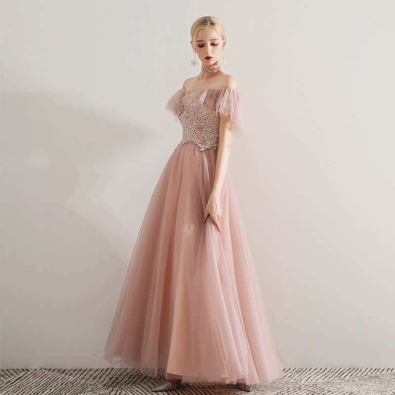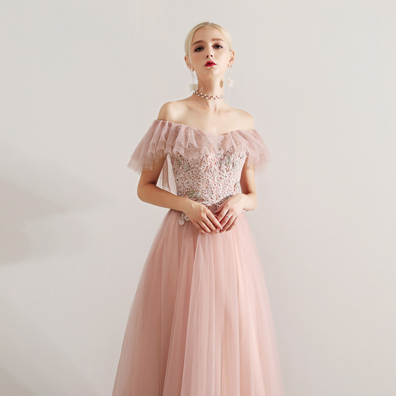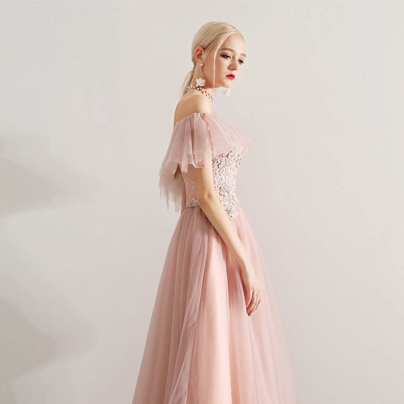 Oli's Home Bride Toast Dress Female 2022 Wedding Bridesmaid Long Dress Dinner Annual Meeting Hosted by Western Style Fairy Powder Small