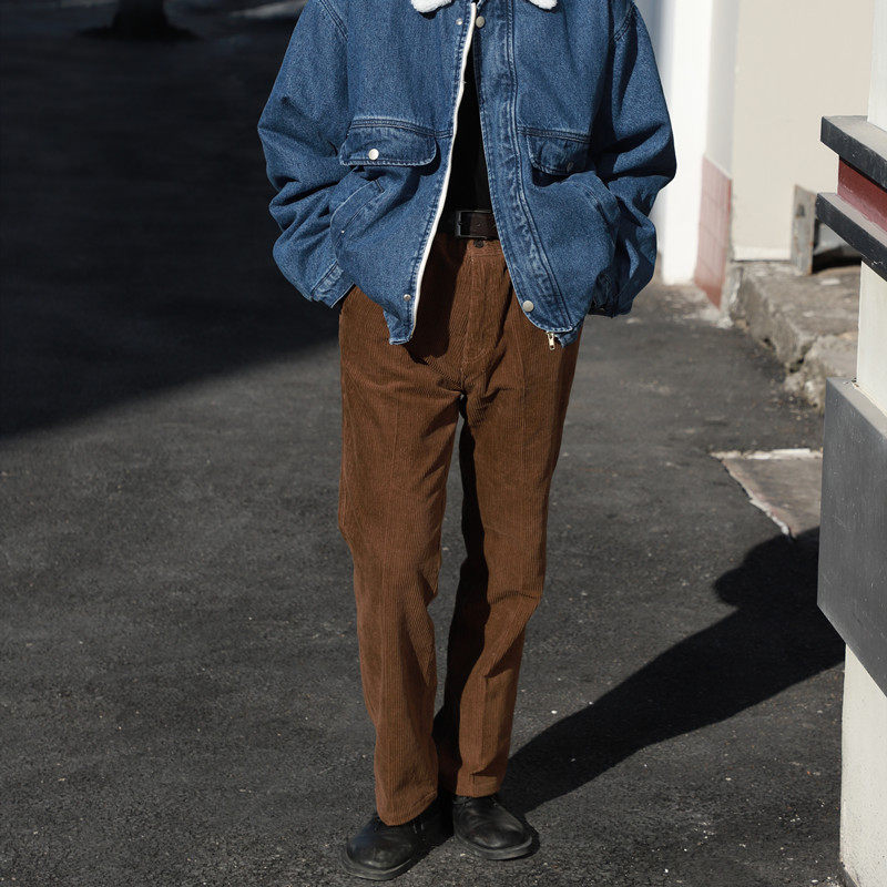 Ho Jiang Hai Tongan retro 80 Old Daddy Loose Light Core Suede Casual Pants High Waist 90% Straight Cylinder 100 Lap Long Pants Man