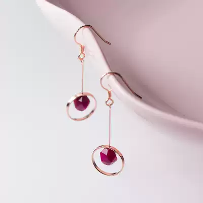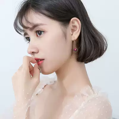 Love Rocky s925 silver earrings female Korean fashion personality round long earrings temperament Tiger Eye Stone ear jewelry