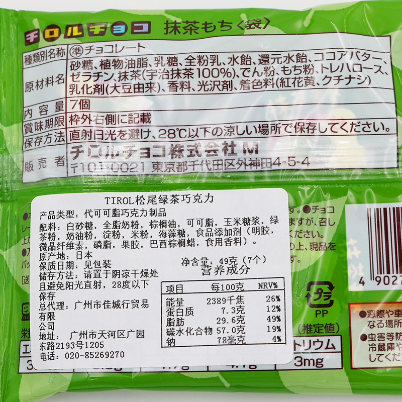 Matsuo Chocolate Japan Imports Uji Smear Tea Green Tea Green Tea Sandwich Sticky Rice chocolate (Cocoa Butter)