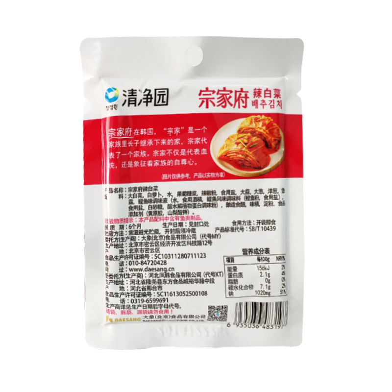 Qingjingyuan Zongjiafu spicy cabbage 40g bag with Korean kimchi army hot pot ingredients for meals