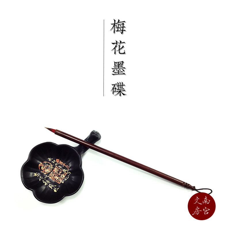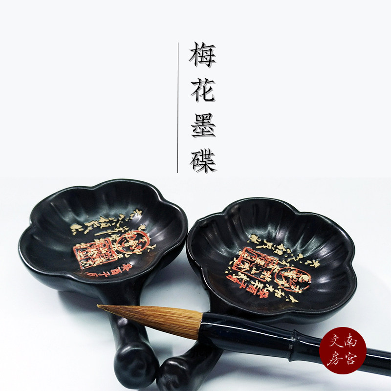 South Palace Wenfang Plum Blossom Ink Disc with Pens Ceramic Ink Tray Small Block Brush Calligraphy Ancient Wind Wenfang Four Treasure Pendulum Pieces