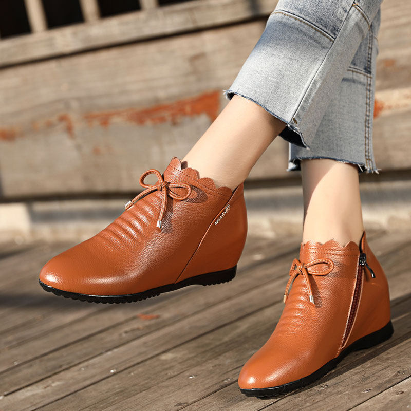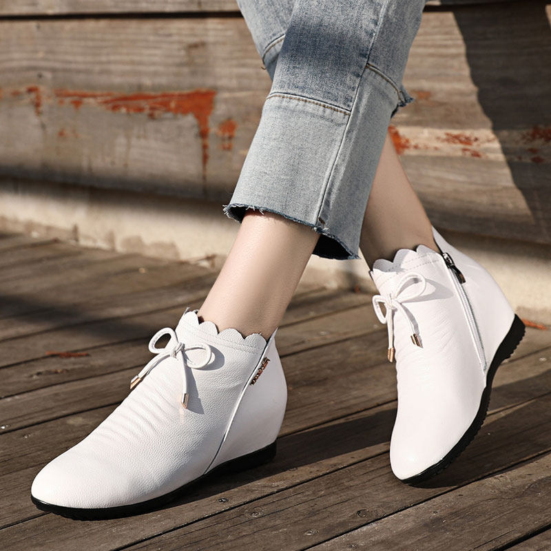 2022 new spring, autumn and winter height increase women's shoes leather shoes wedge-shaped single shoes casual shoes flat all-match small white shoes