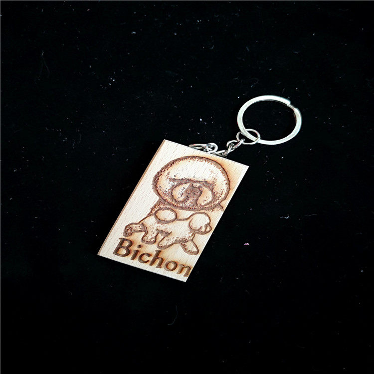 Pet Wooden Sign Engraving Dog Image Keychain Tag Multi-breed Dog Buckle Ring Pendant Dog Tag