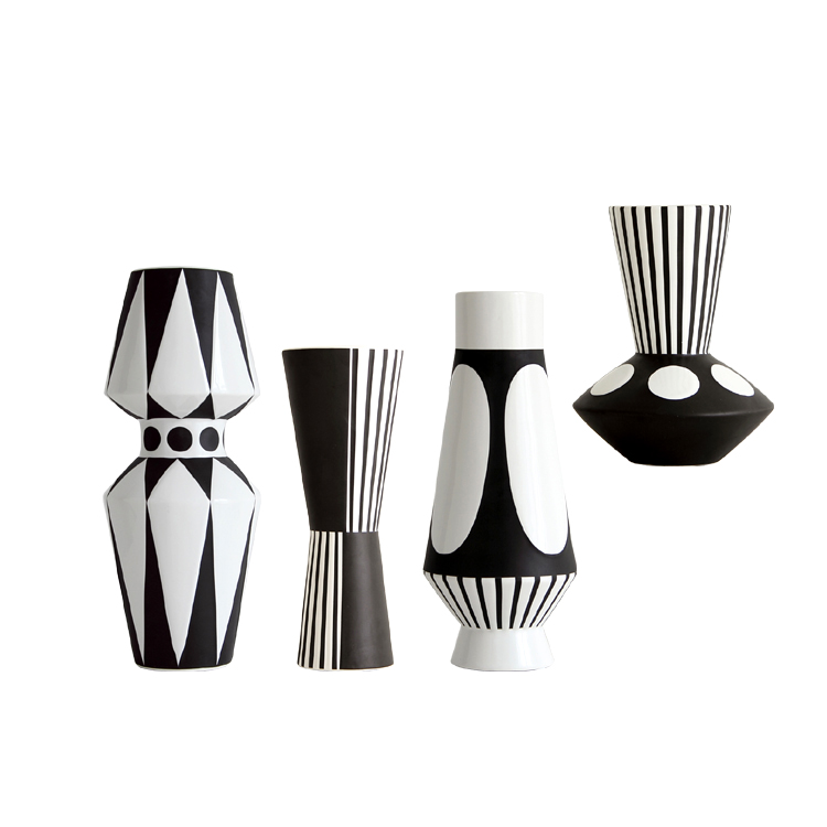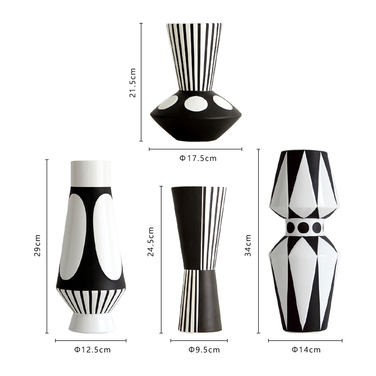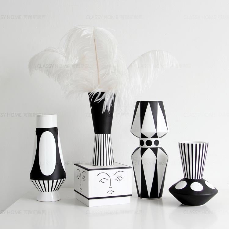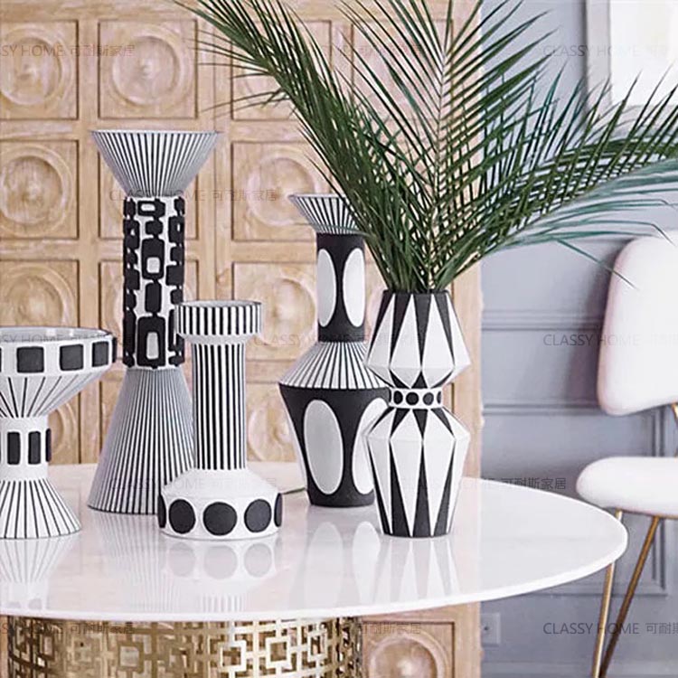 Designer Series Black & White Geometric Ceramic Handcrafted Vase Florator Modern Light Lavish Minima Nordic Book House Pendulum