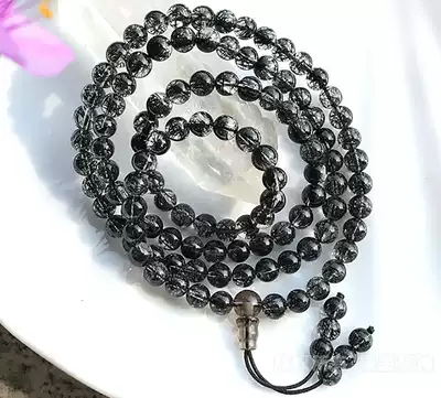 Brazil natural black hair crystal 108 beads necklace multi-circle three layers of men and women's hands lack of water black crystal bracelet