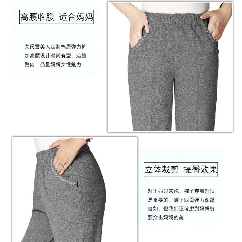 Winter middle-aged women's pants velvet thick cotton warm casual pants elastic high waist elastic large size loose mom