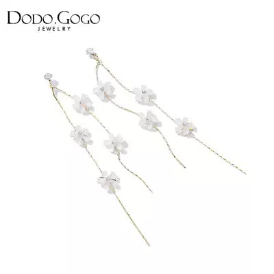 Super fairy temperament flower earrings female Korean long version of tassel earrings fashion round face thin earrings