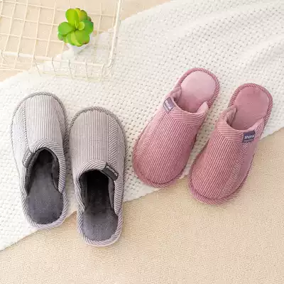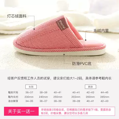 Buy one get one free winter cotton slippers home indoor non-slip warm Japanese couples home men's shoes women autumn and winter