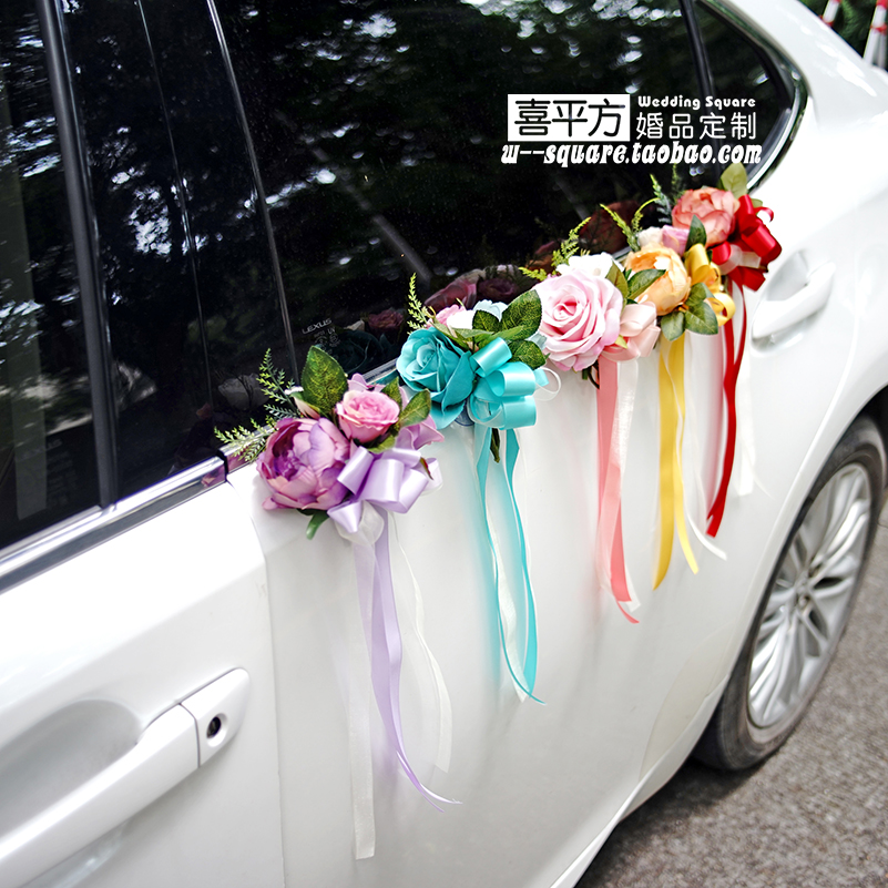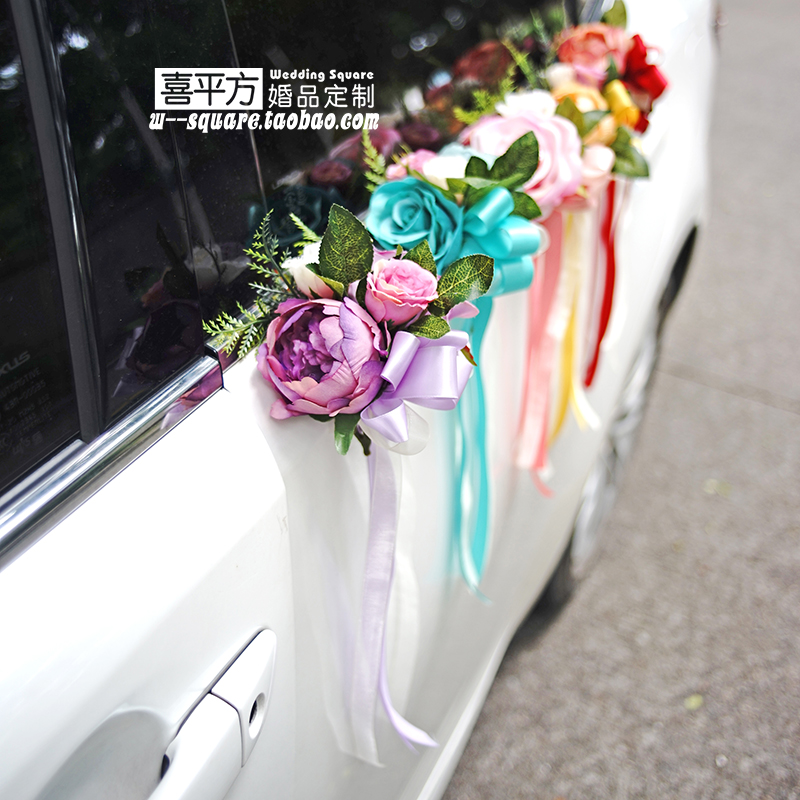 High-end flower ball car mirror door decoration flowers Simulation decorative flower team wedding car banquet chair back decoration flowers