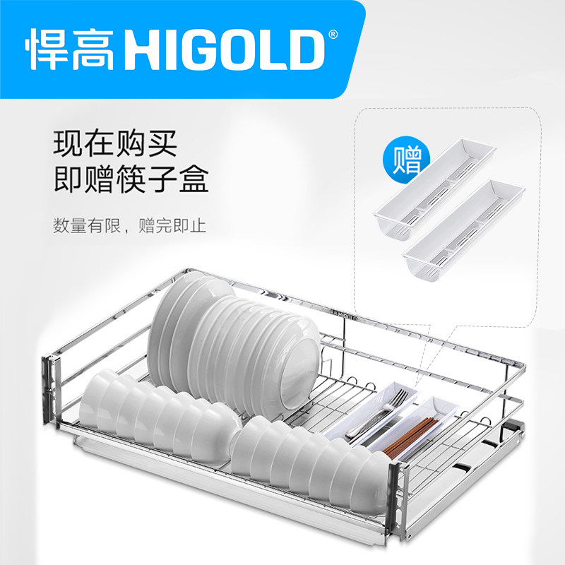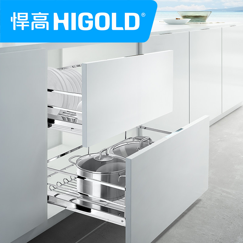 HIGOLD high pull basket black diamond square steel stainless steel kitchen overall cabinet pull basket damping condiment pull basket bowl basket