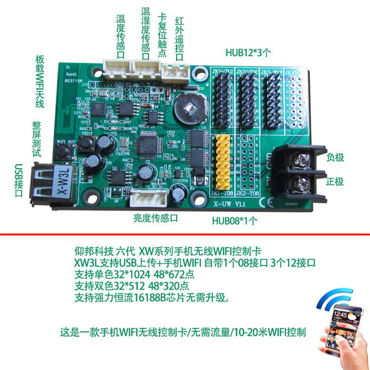 BX-W3 X-W3L single bicolor phone wireless LED control card supports constant current module supine technology WIFI