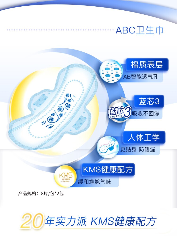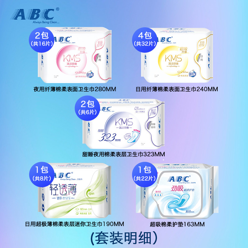 abc sanitary napkin women's full box day and night cotton affordable combination official official website aunt towel