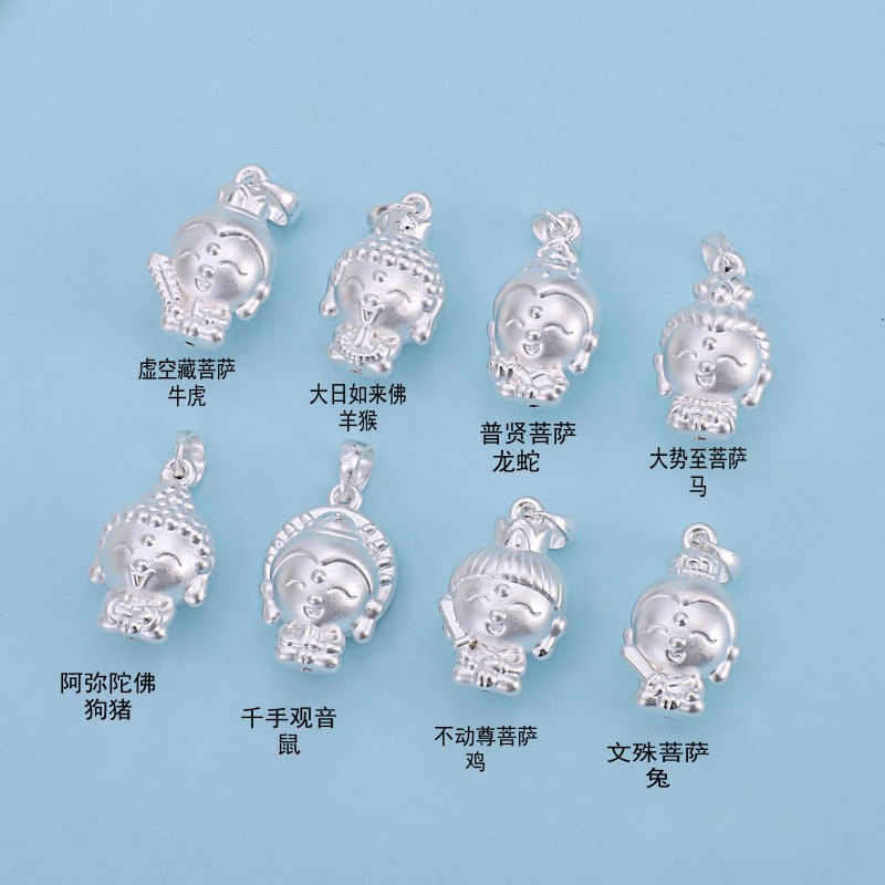 999 Sterling Silver Small Twelve Zodiac Life Buddha Necklace Pendant Big Sun Tathagata Puxian Bodhisattva Patronus Pendant