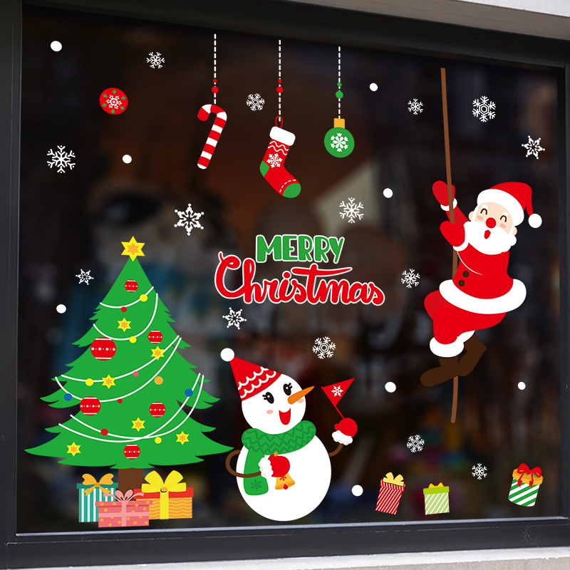 2022 Christmas Decorations Shop Atmosphere Scene Placement Shop Window Sticker Tiger Year Window Flower Glass Sticker Flower Ring Door Sticker