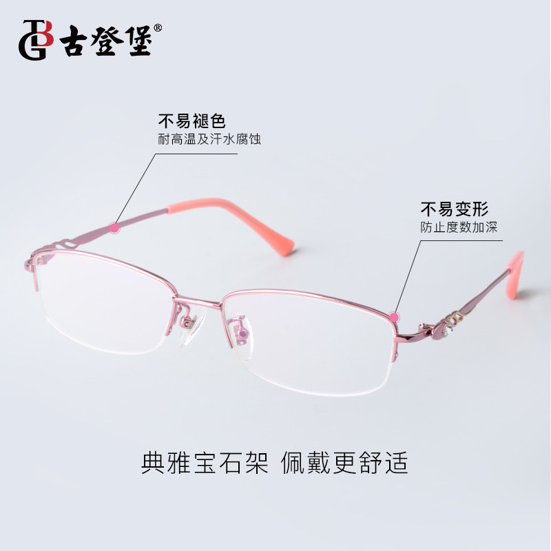 Goodenburg Myopia Glasses Female Super Light Thin Half Frame Degrees Can Be Mesh Red with a small anti-radiation computer eye protection