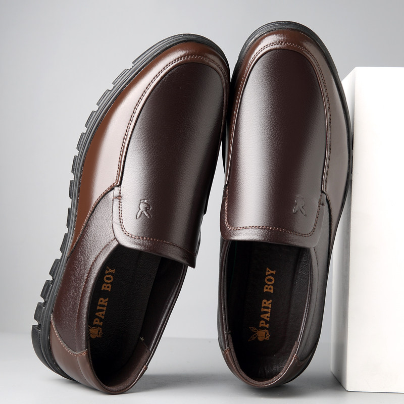 Men Leather Shoes Men Leather Spring Autumn Season Breathable Mid-Aged Non-slip Soft Bottom Middle-aged Casual Leather Shoes Dad Shoes Man