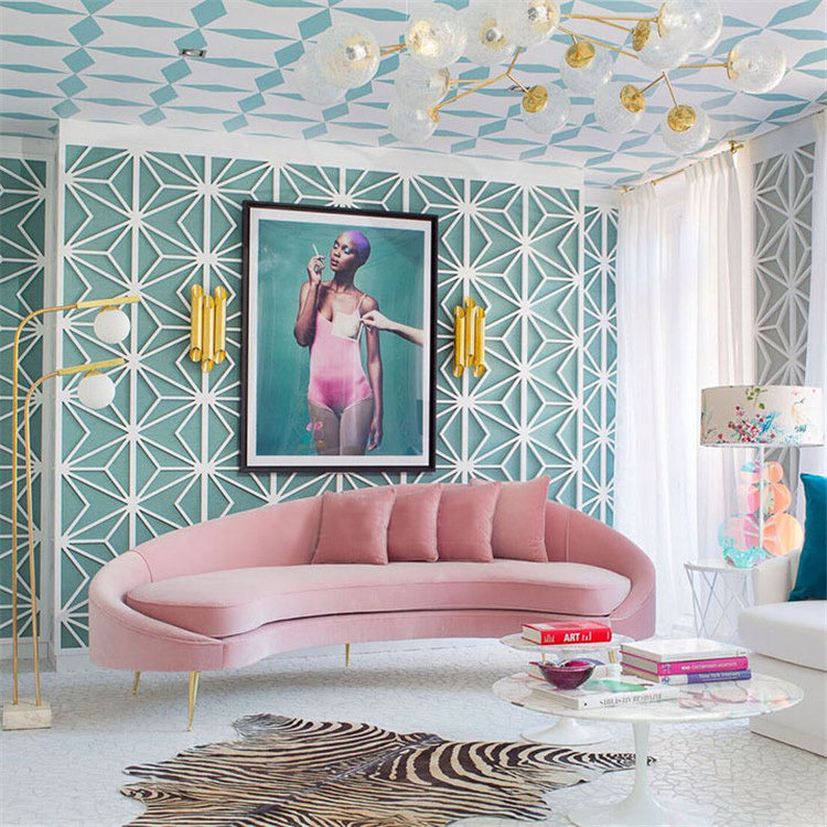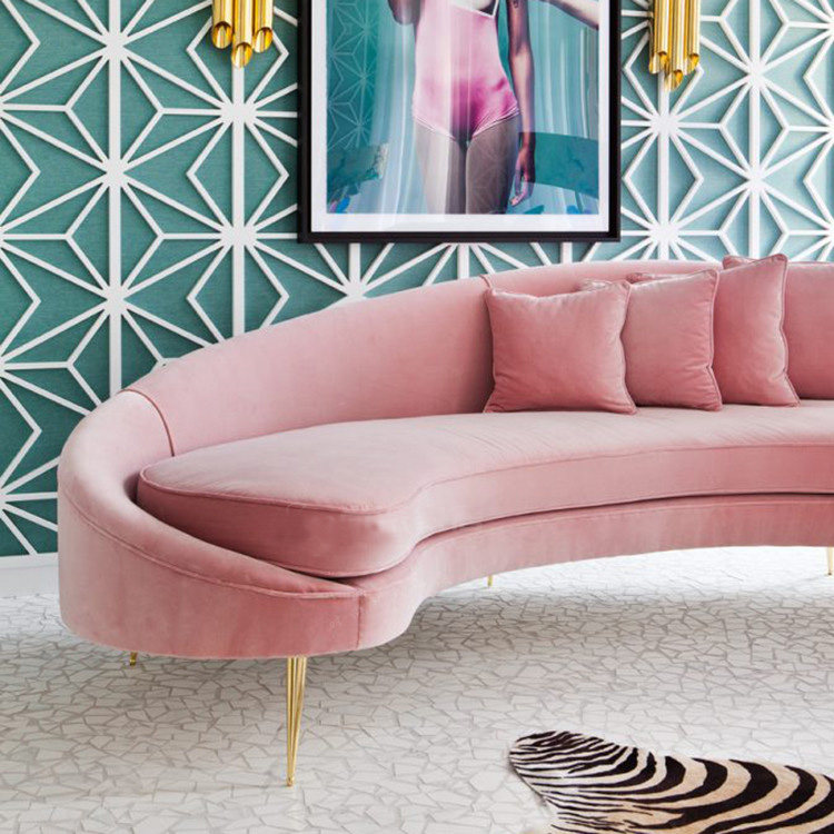 Nordic curved sofa pink special-shaped sofa modern light luxury living room model room hotel fashion double three-person sofa