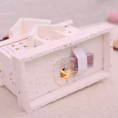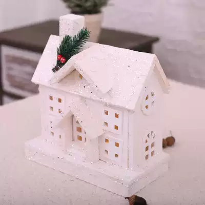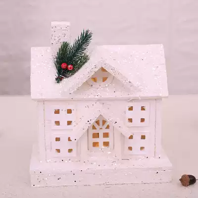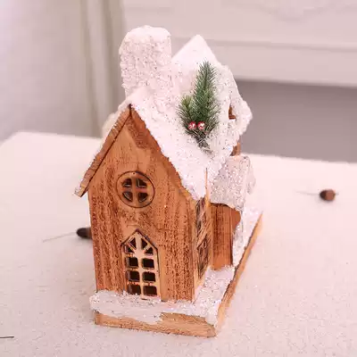 Christmas New Ornaments Wooden House with Lantern Window Scene Christmas House Castle Decoration Snow Small House