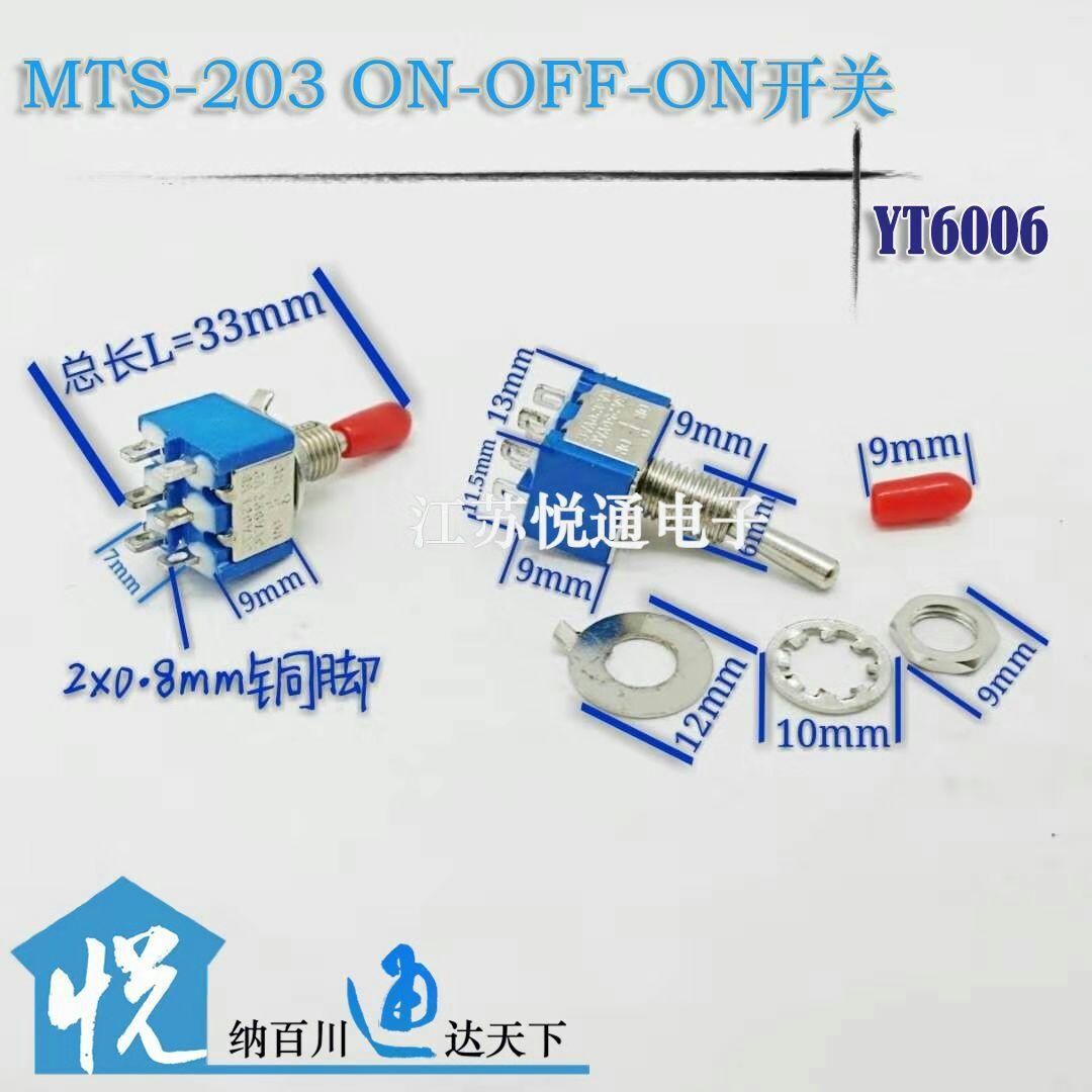 MTS-203 ON-OFF-ON button toggle switch 3A 250V 6A 125V 125V joint 6 foot 3 gear