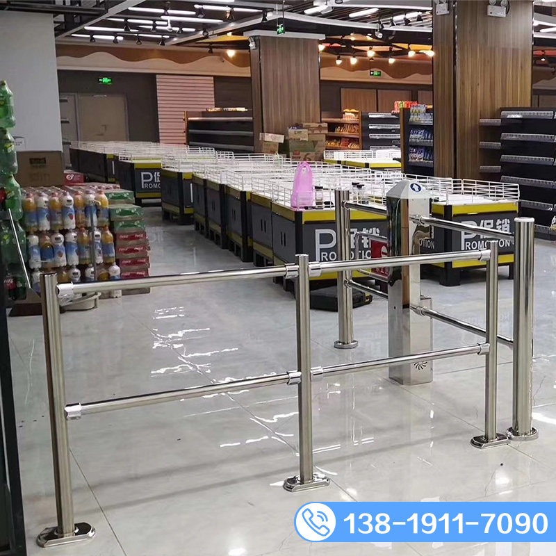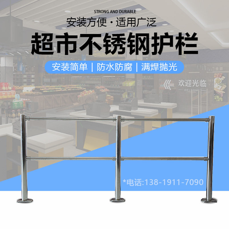 Supermarket Guardrails Rod Cashier Counter Silver Counter Wind Scenic Area Queuing Pedestrian Walkway Stainless Steel Guard Rail Isolated Epidemic Prevention