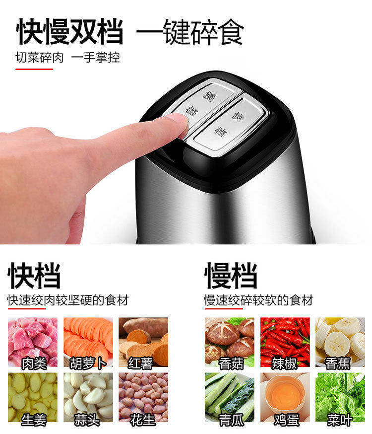 Juice, cut vegetables, minced meat, crushed ice, dry grinding, mixing and beating eggs, mixed minced meat, shredded and sliced