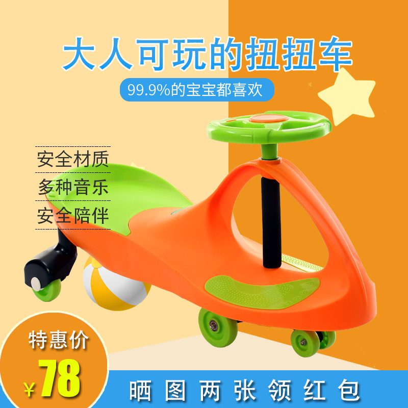 Children's pulley, twisting car, adults can sit on 1-3 years old anti-rollover universal wheel swing Niuniu fat car boy
