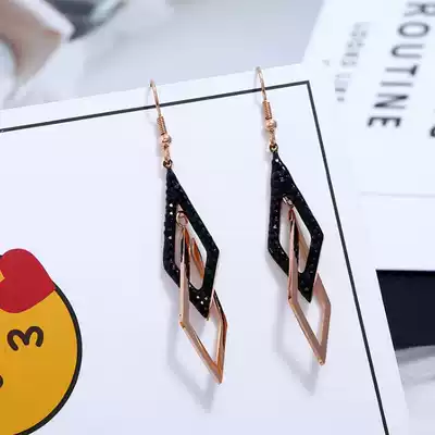 Korean version of the new titanium steel rose gold diamond-encrusted long version of geometric earrings wild temperament hollow double ring diamond earrings women