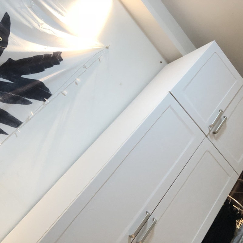Thick kitchen cabinet door sticker wardrobe sub-furniture refurbished self-adhesive wallpaper waterproof wallpaper white imitation wood grain