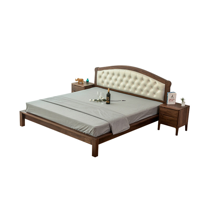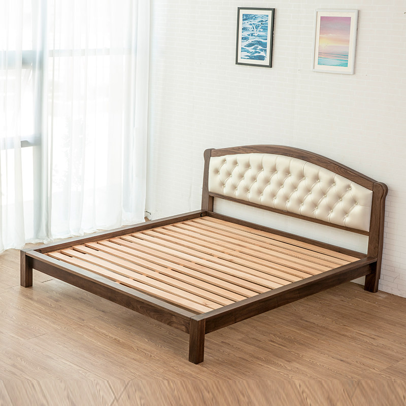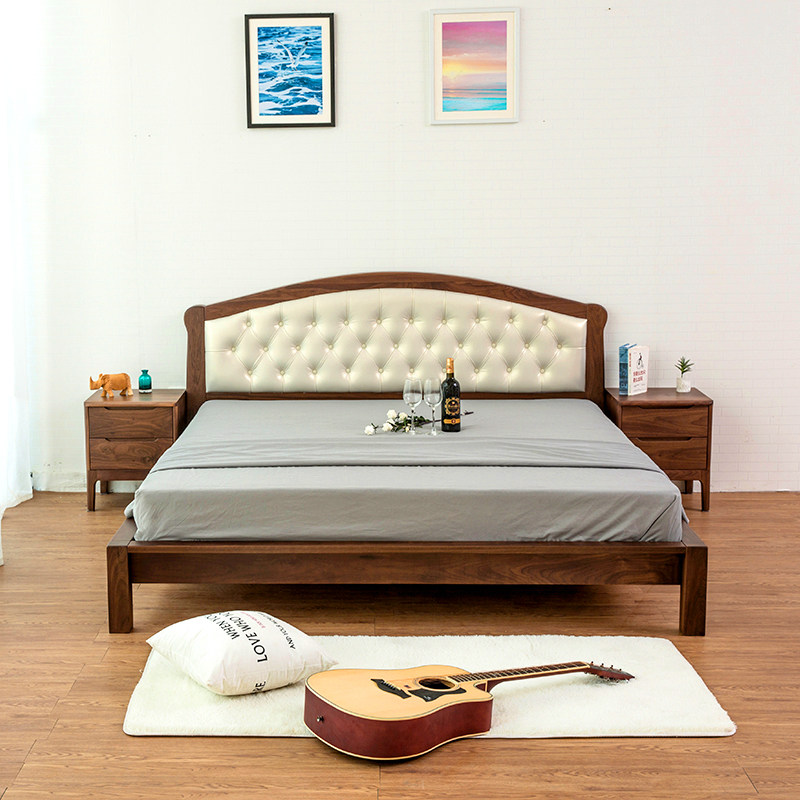 Nordic simple black walnut solid wood double bed oak pure solid wood big bed wedding bed tatami soft back bed